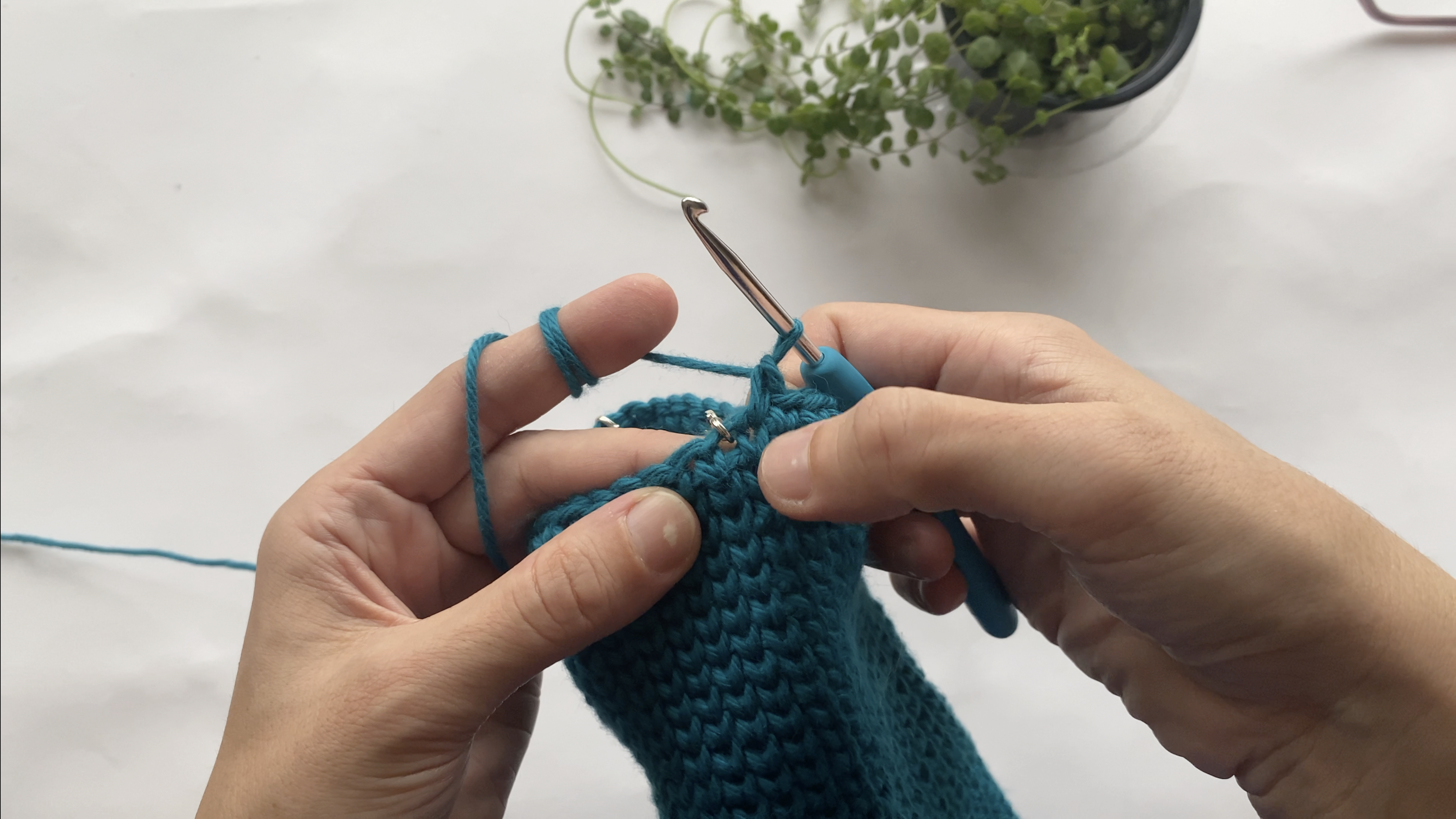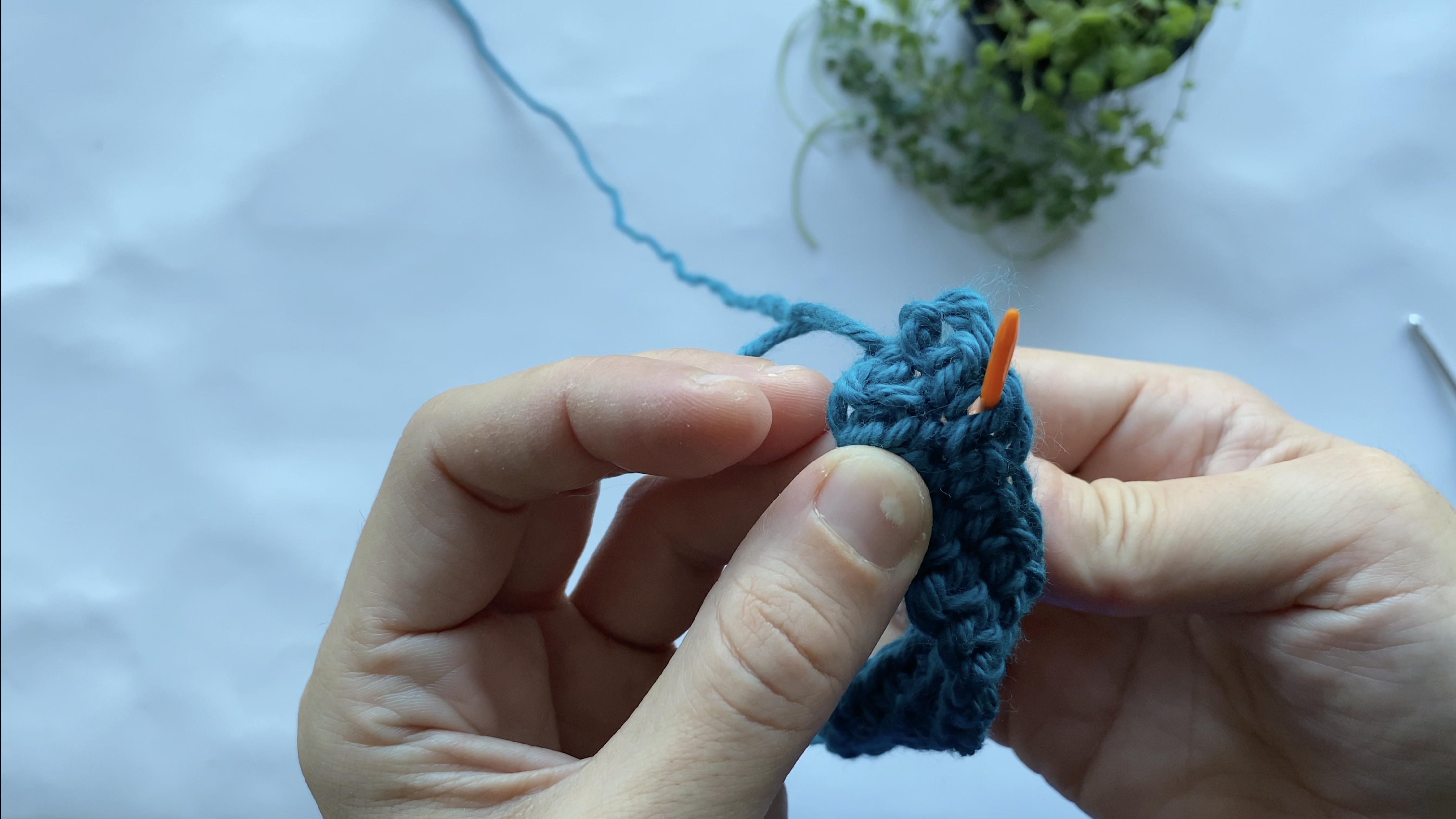 Row 1 (left side): Attach the yarn to the far right and 1 waistcoat st to each of 16 sts. Ch 1 and turn.