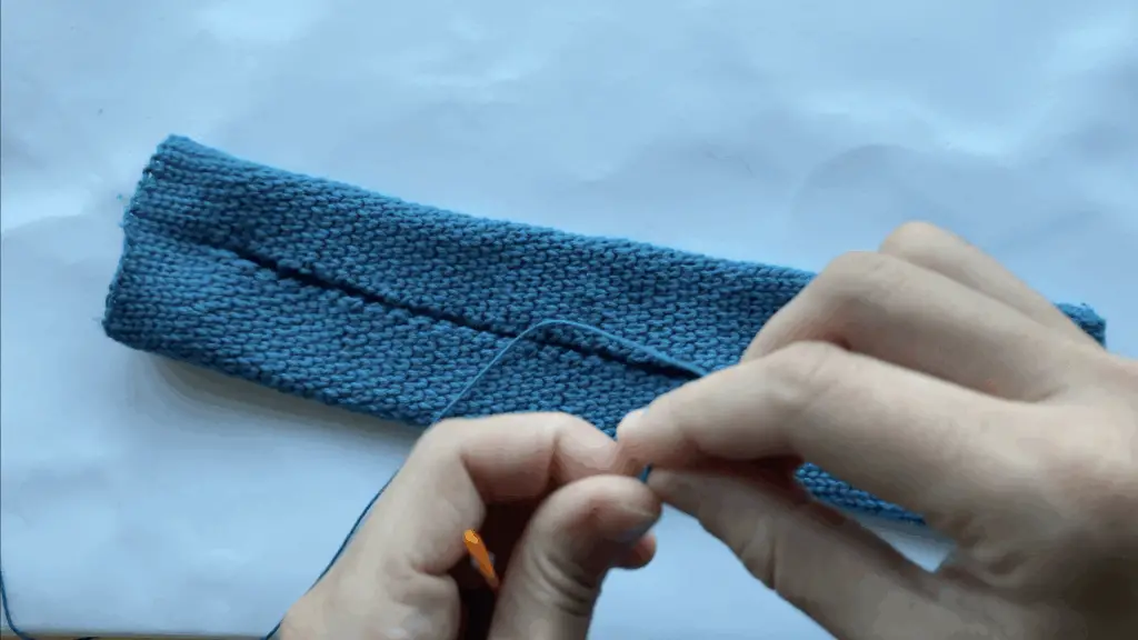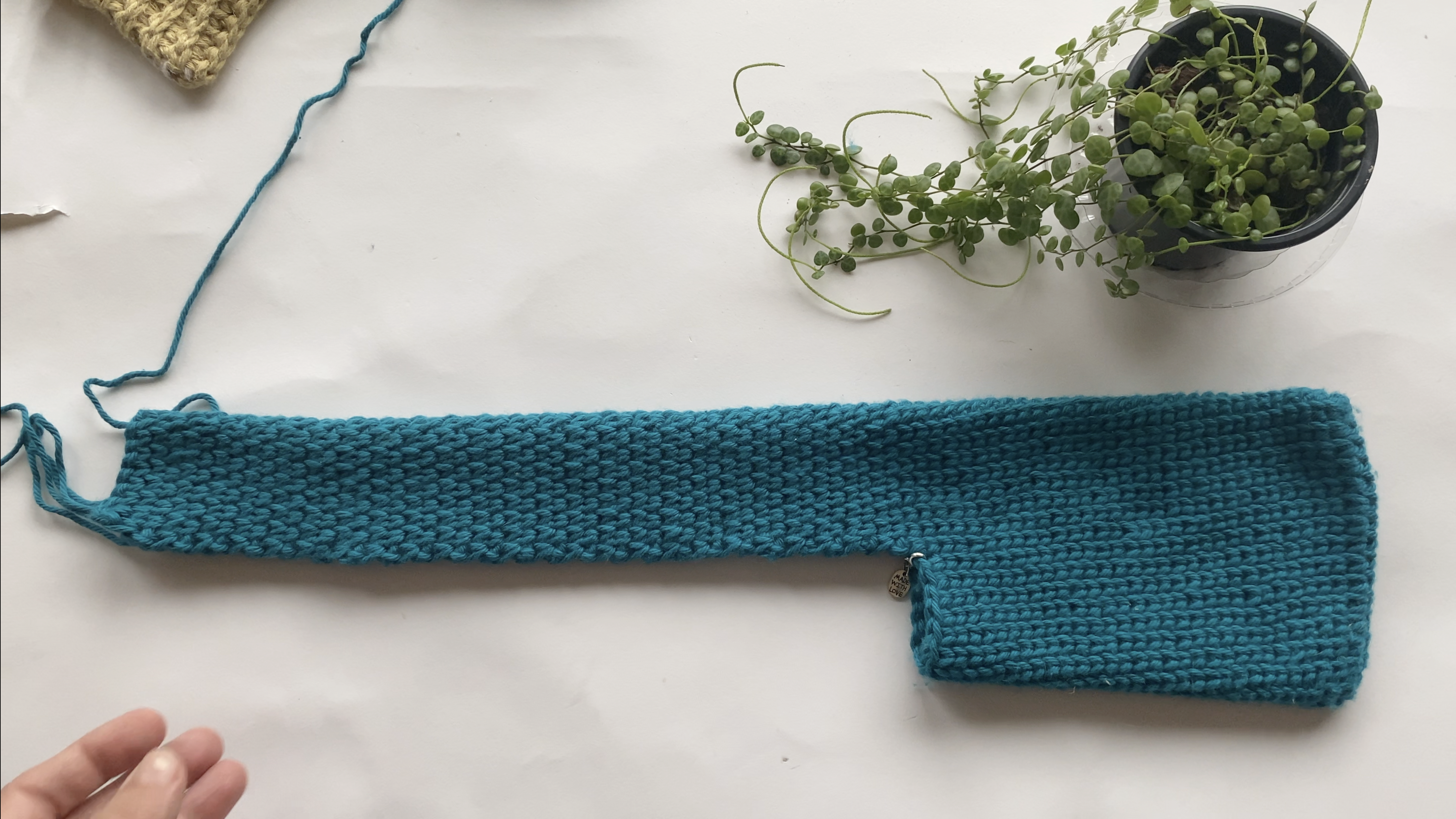 Rows 1:49: 1 waistcoat st to each of 16 sts. Ch 1 and turn. At the end of row 49, ch 1 and fasten off.
