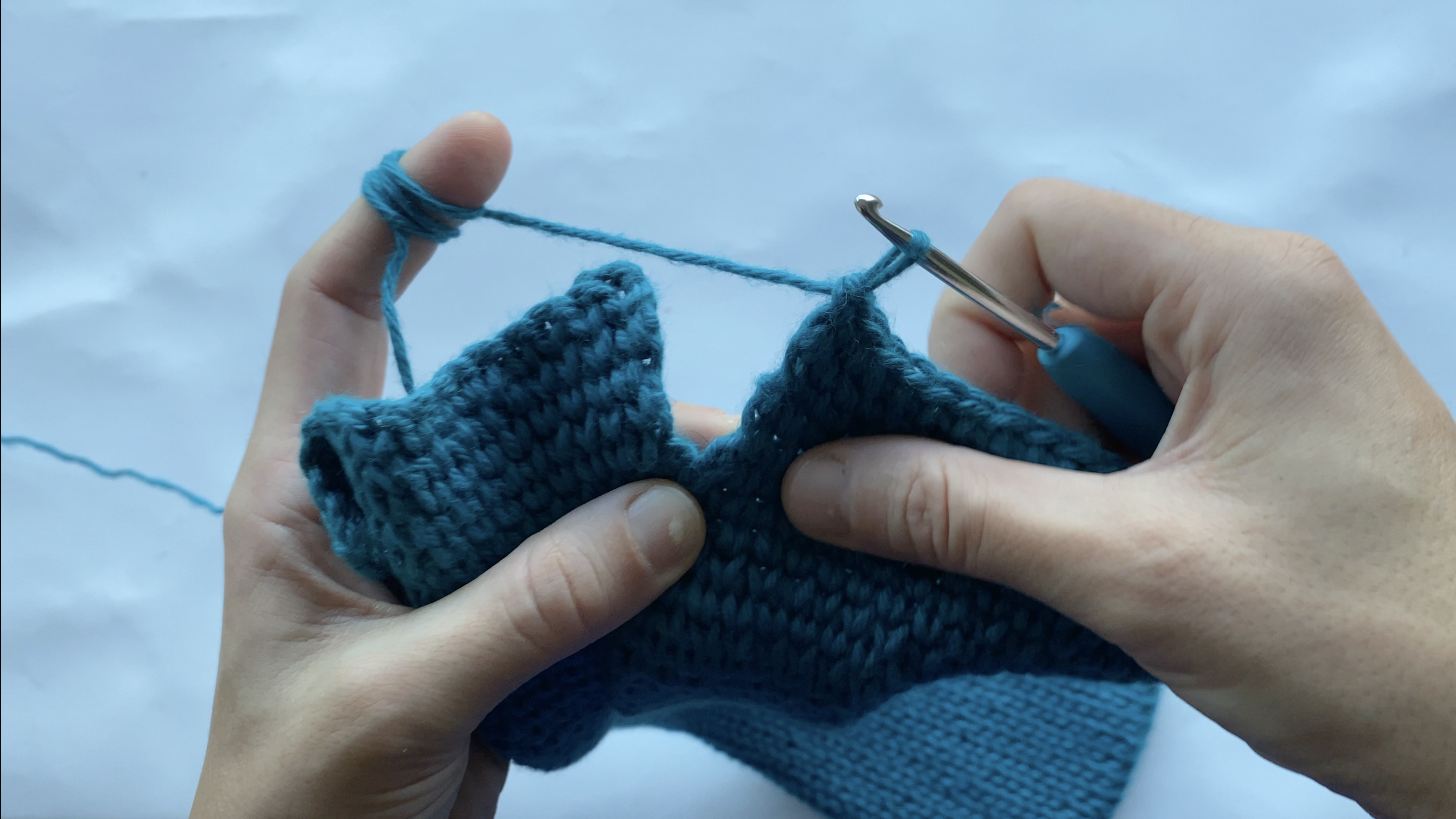 Waistcoat Stitch: It’s similar to sc. The difference is with this stitch is to insert your hook in the middle of the post, in the middle of “v” shape. Then, finish the stitch same as sc (pull up the loop, yo, pull through both loops on the hook.