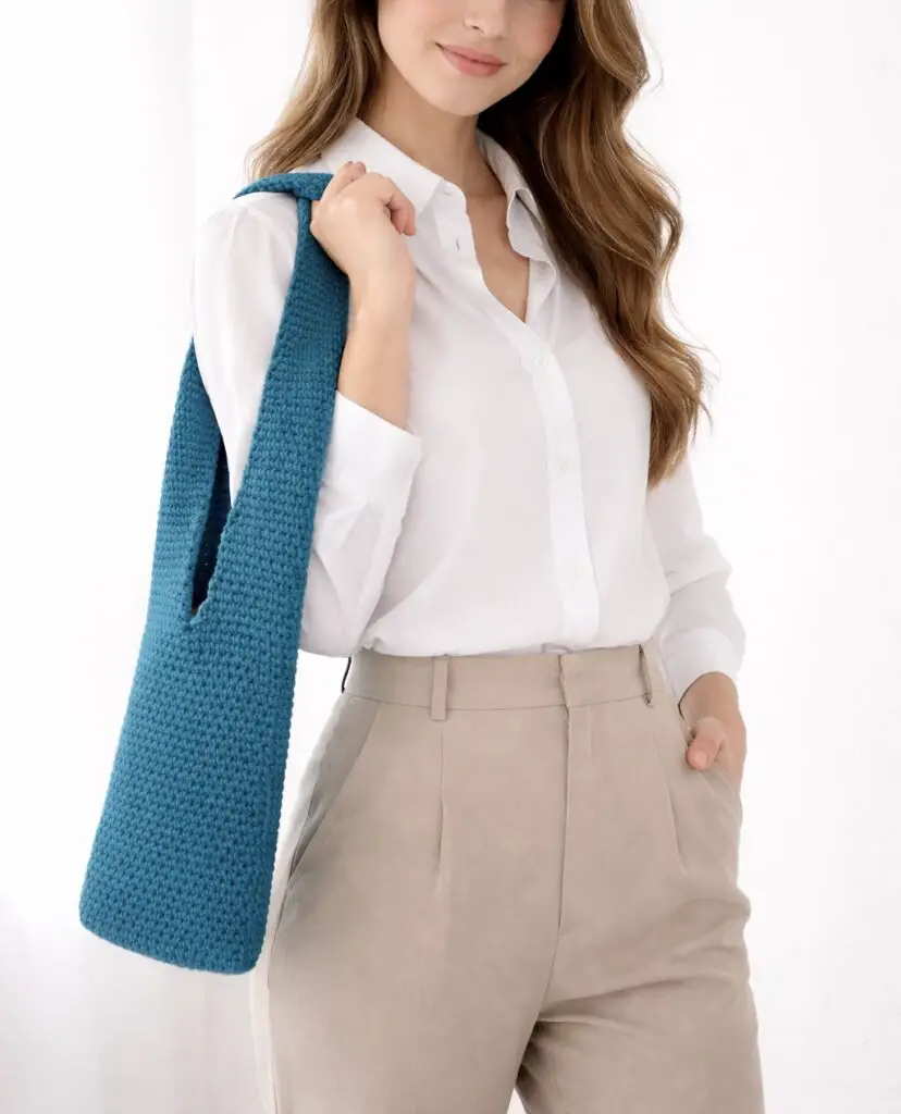 This crochet bag is very easy and made in one piece. It’s very practical and modern. I think it would be a wonderful gift for holidays or for special occasions. It’s only one row repeat which is waistcoat stitch. Anyone who knows basics of crochet should try this.