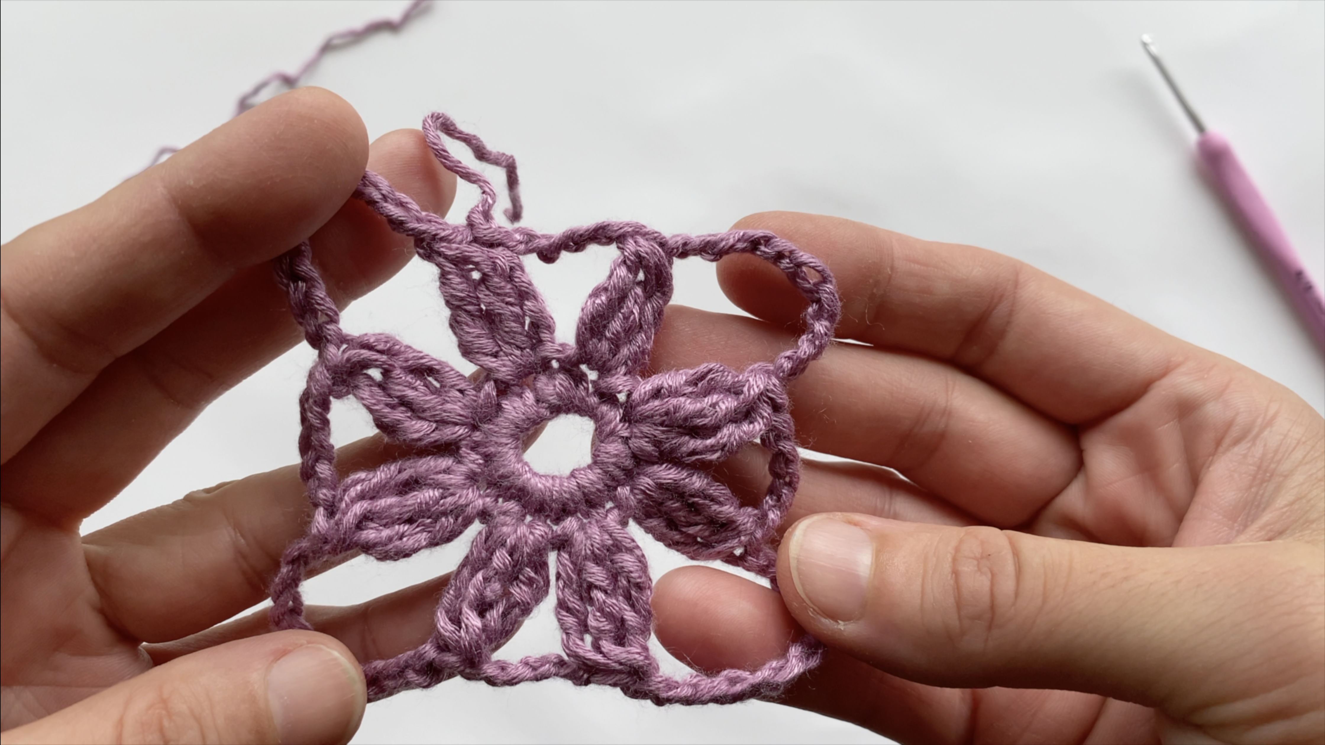 Only one flower piece will be made fully. Next flowers are going to be connected so, after starting round 2, connect as you go.