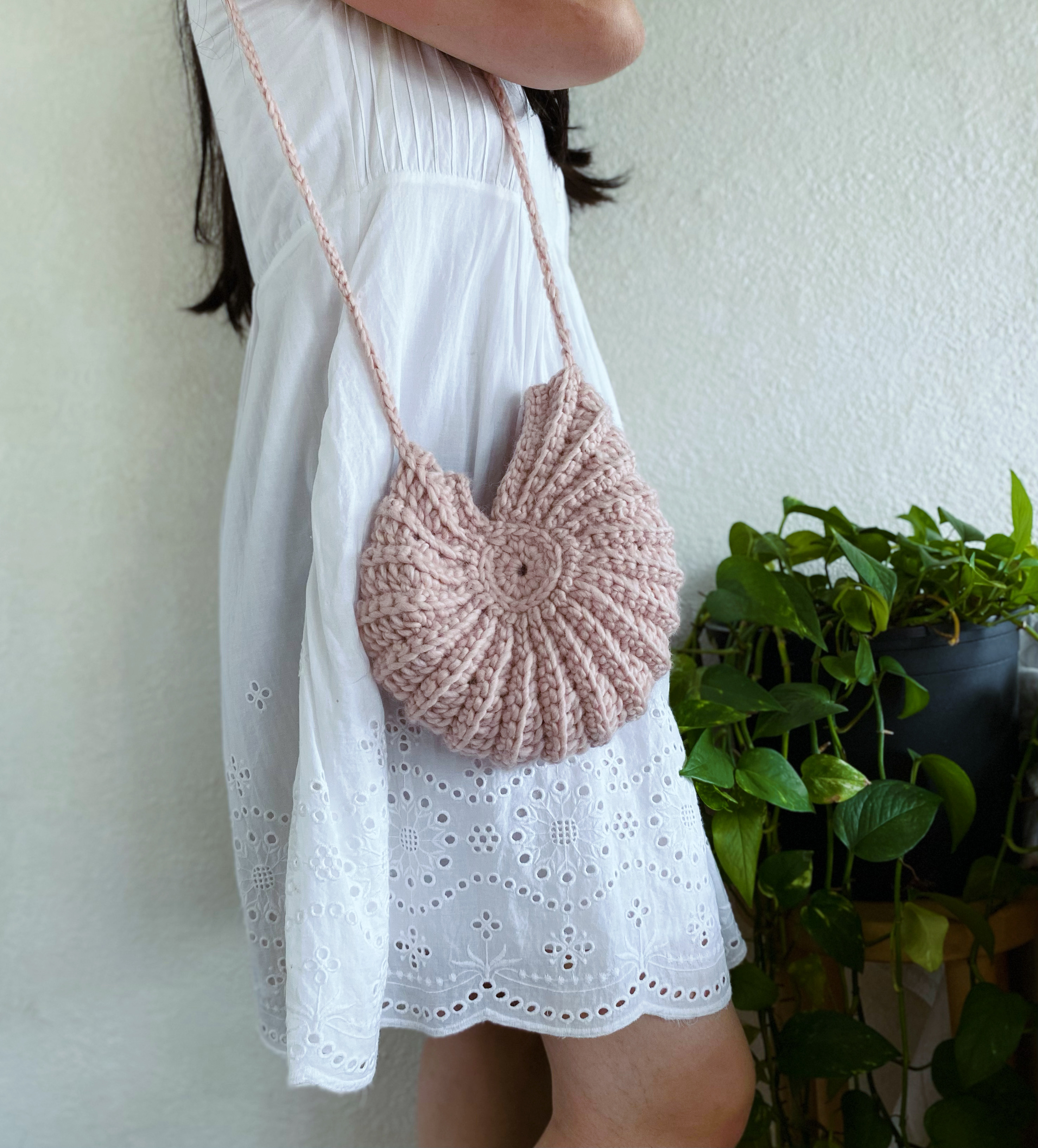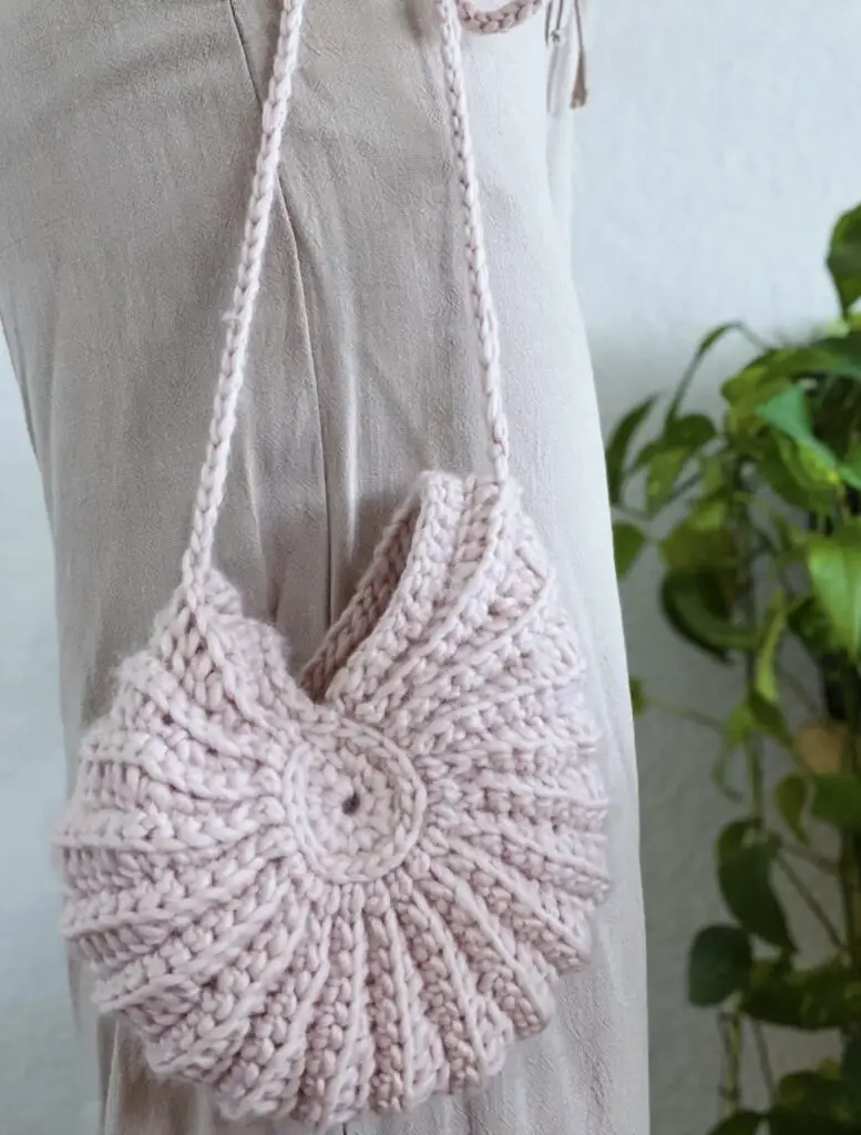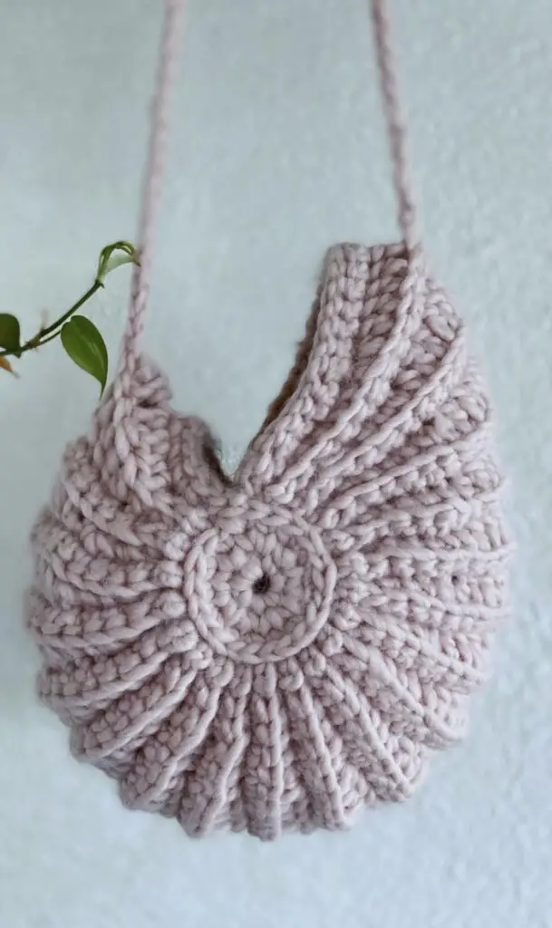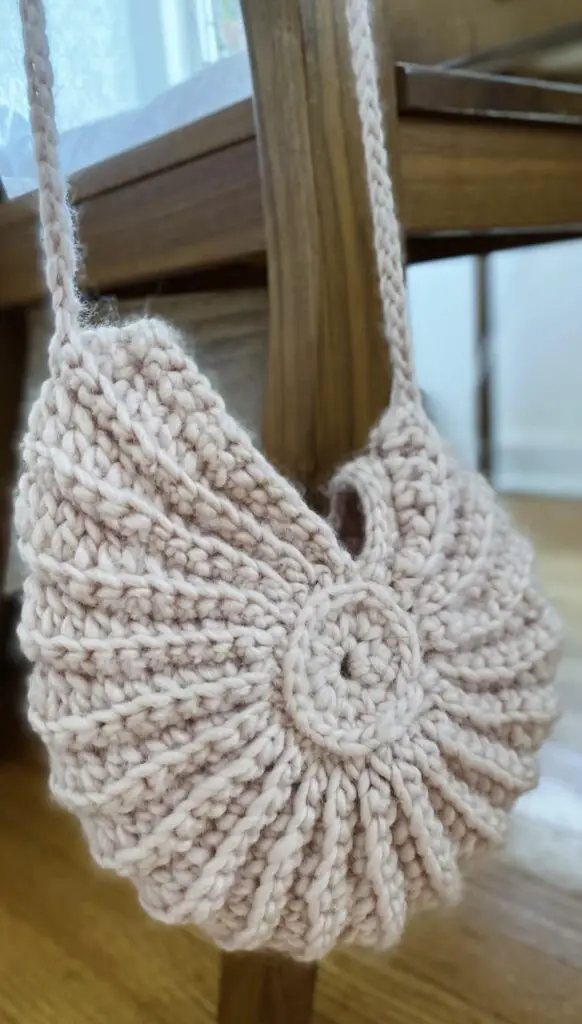 This crochet seashell bag is very easy and quick project, and very fun to make it. The bag is started from the middle and continued in between two round pieces, made some increases on the way to make shape like Seashell. I used wool yarn for this project and the bag turned out so cute, extremely lightweight, and very strong.