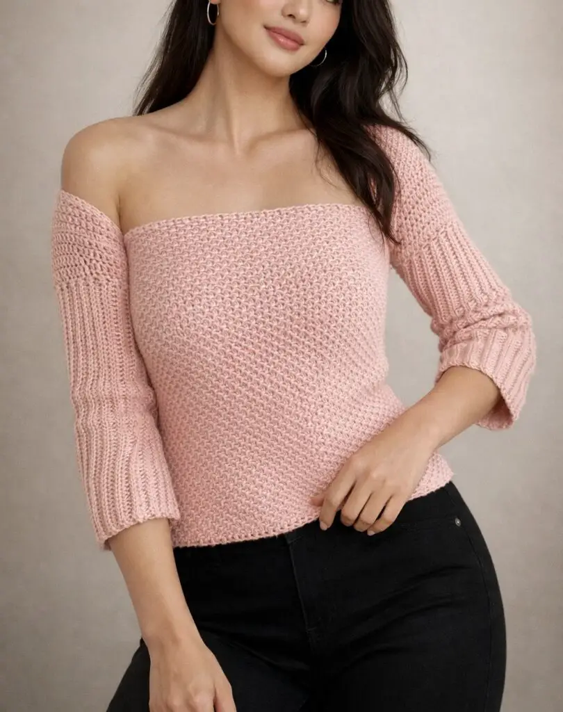 The sweater is worked in one piece with rectangle piece. Once the rectangle is completed without fasten off continued to crochet the sleeve. When the sleeve is completed, it’s fasten off. Then you attach the yarn to the opposite side of the rectangle to crochet the second sleeve.